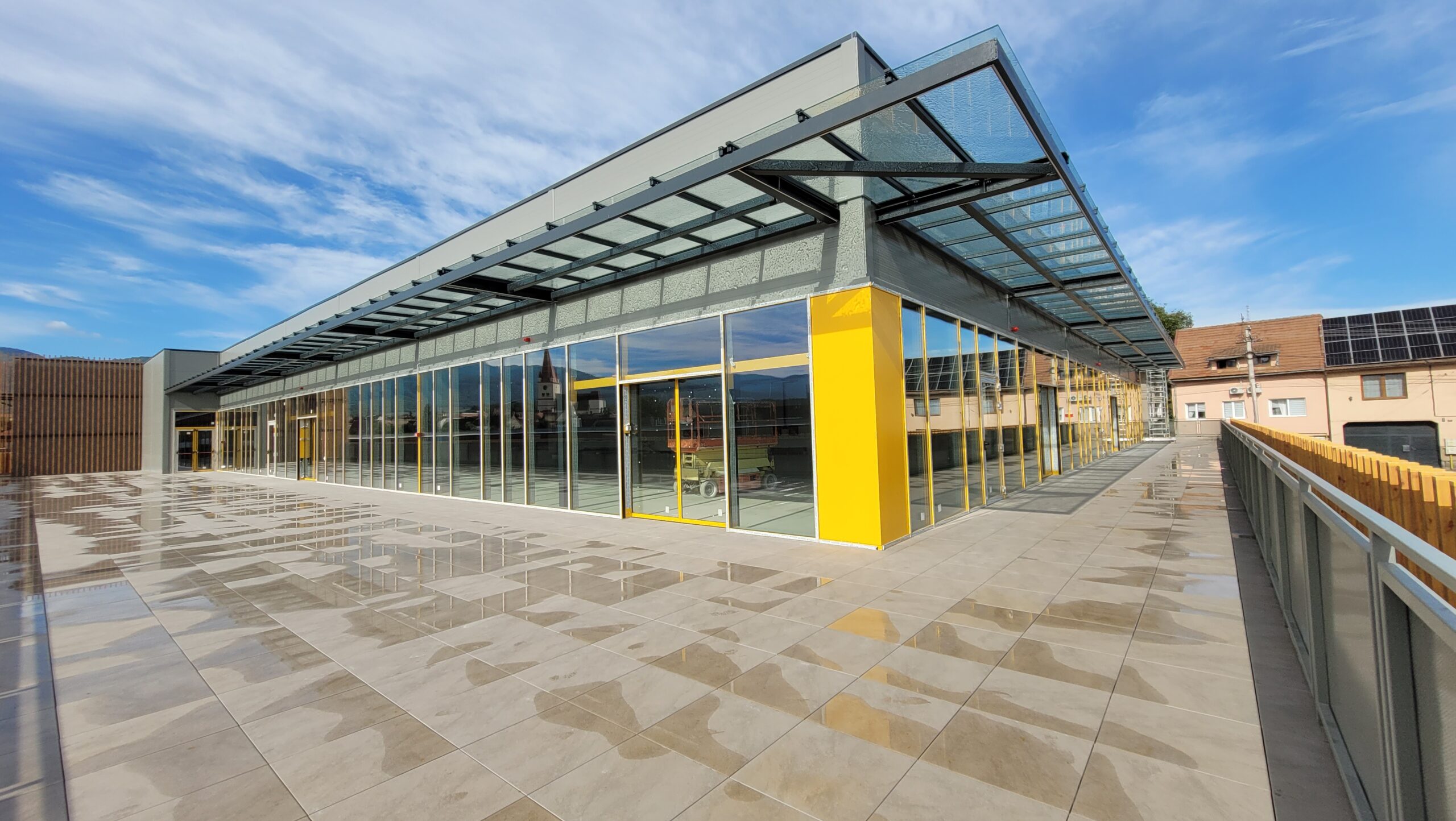 - fațadă cortină și ușă acces clienți glisantă automată;
